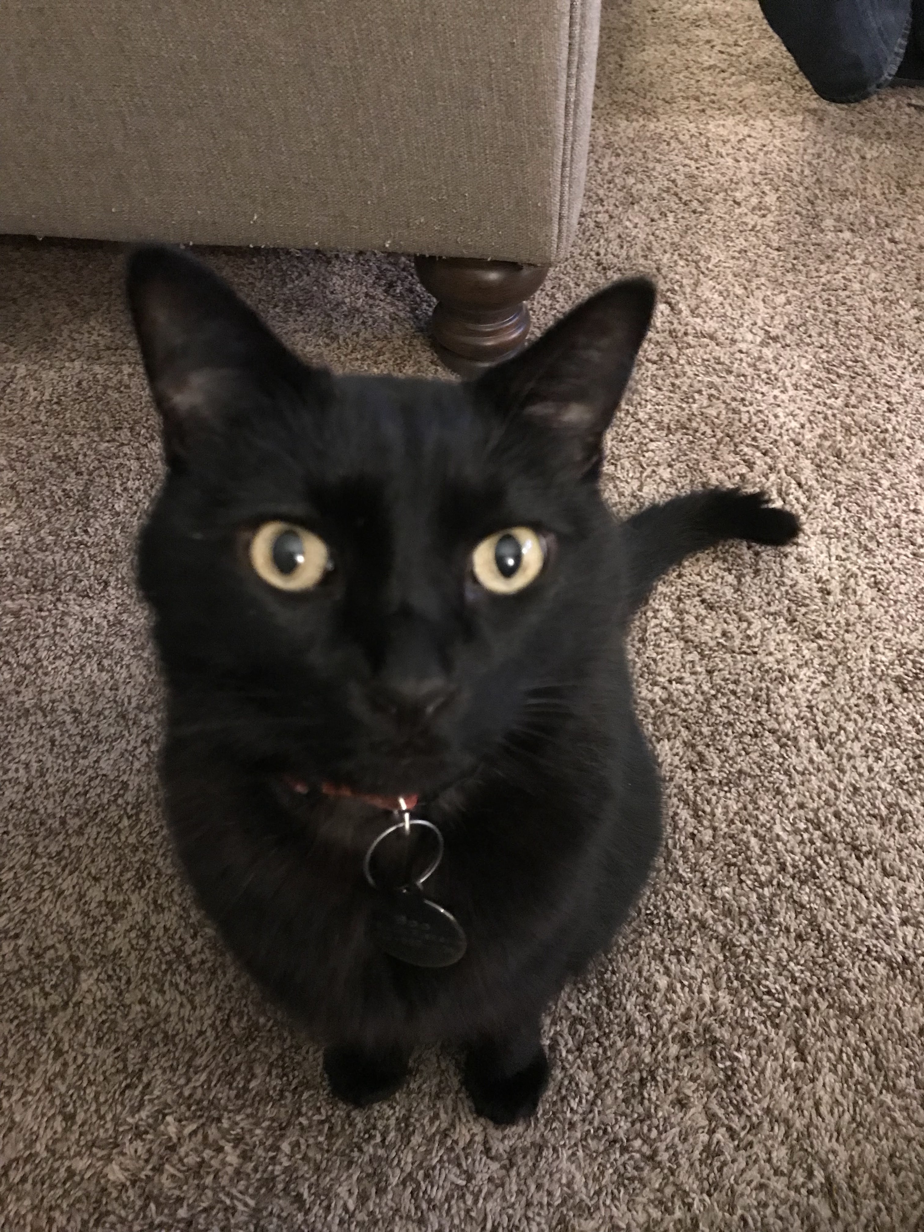 This Halloween was funny! One of our neighborhood little girls loves Boo so much, she dressed up like a black kitty and said she was Boo! It was so sweet. Felix was a nervous wreck every time the door bell range for trick-or-treaters, he ran for the basement! Not sure why this cat is so skiddish!